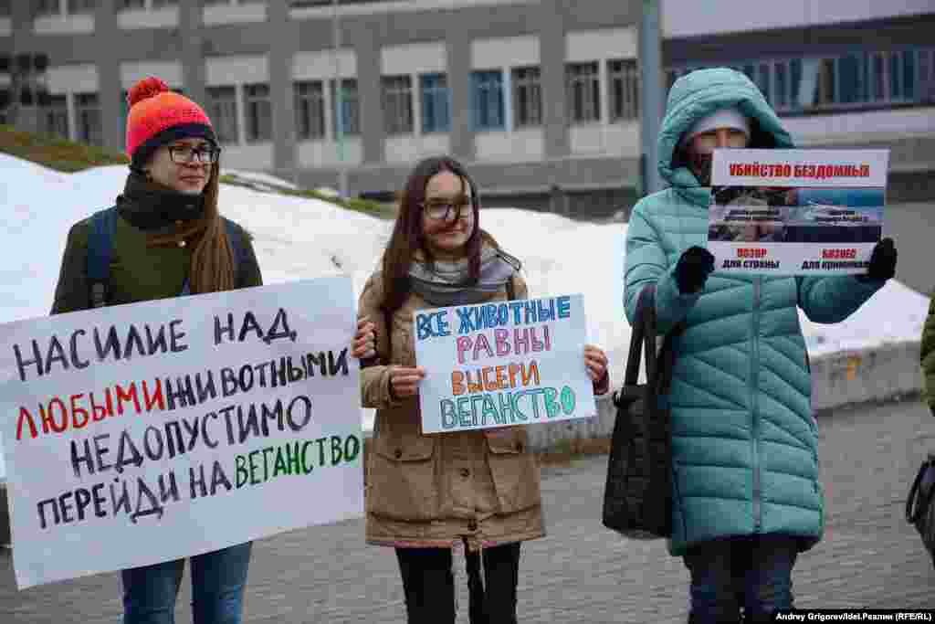 Зоозащитники собрались 26 марта в час дня у памятника Муллануру Вахитову. Предыдущая такая акция состоялась осенью, в ней участвовали десятки городов по всей стране. Поводом для пикетов послужила история живодерок в Хабаровке, замучивших насмерть кошек, собак и птиц. Зоозащитники поставили вопрос об ужесточении наказания за жестокое обращение с животными и обеспечении защиты прав животных на законодательном уровне.
