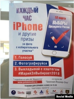 Еще один своеобразный способ — розыгрыши и конкурсы. 18 марта, придя на избирательный участок, каждый житель Татарстана может стать обладателем ценного приза. В республике пройдет фотоконкурс #айданавыборы. В конкурсе представлено 16 номинаций. Нужно будет прийти на участок, найти волонтера у стенда и сделать фотографию. Приз — Iphone. Такая же история в Йошкар-Оле. Там в общественном транспорте появились листовки с призывом принять участие в конкурсе-розыгрыше за лучшее селфи на участке.