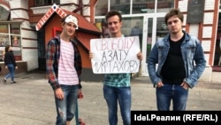 — Президент Путин должен немедленно освободить Азата Мифтахова, которому до 7 сентября продлили содержание под стражей, Необходимо прекратить дела всех политзэков. Россия должна быть свободной, —заявил участник акции Вячеслав Батаев.