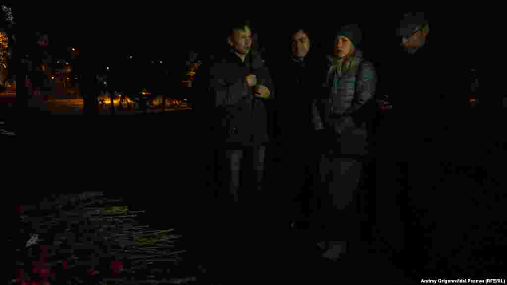День памяти жертв политических репрессий в Казани завершился традиционным возложением цветов у памятника жертвам репрессий в Ленинском садике. В семь вечера здесь собралось около сорока участников акции.