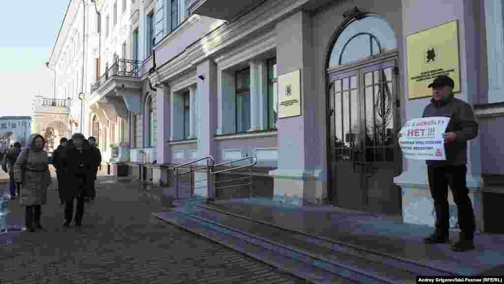 Серия одиночных пикетов против нового казанского генплана прошла в пятницу, 21 февраля, у исполкома города на Кремлёвской. На протестную акцию вышли жители тех уголков Казани, которым лоббируемый чиновниками и крупными девелоперами документ сулит перемены к худшему — жители Дербышек, Кварталов (район Гавриловской рощи), микрорайона Танкодром...