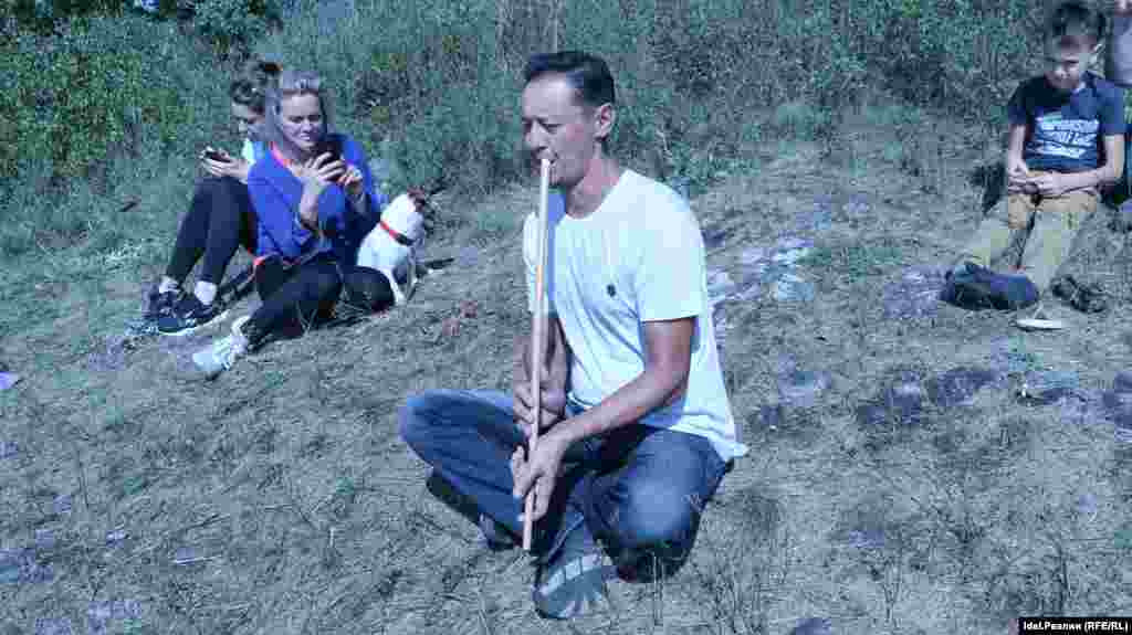В лагере тем временем готовятся к концерту и праздничному обеду. Артисты повторяют свои номера. Группа активистов разливает чай и помогает двум поварам варить в огромных казанах плов на несколько сот человек.