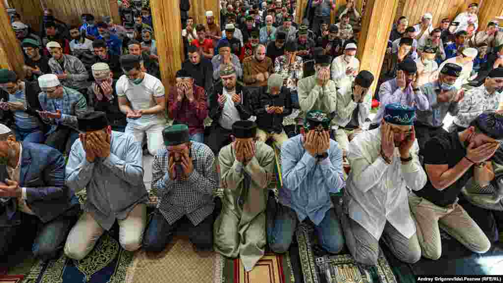 Верующие начали собираться в "Гадел" с пяти утра. Двухэтажное деревянное здание расположено на южном выезде из Казани у РКБ. За последние годы здесь разрослись жилые микрорайоны — Солнечный город и Ферма-2. Поэтому места внутри люди спешат занять заранее. Ближе к шести оба этажа здания оказались забиты, часть верующих расположилась на молитву во дворе. По оценкам имам-хатыйба мечети Рустема Бакирова, на праздничную молитву собрались не менее 700 человек.