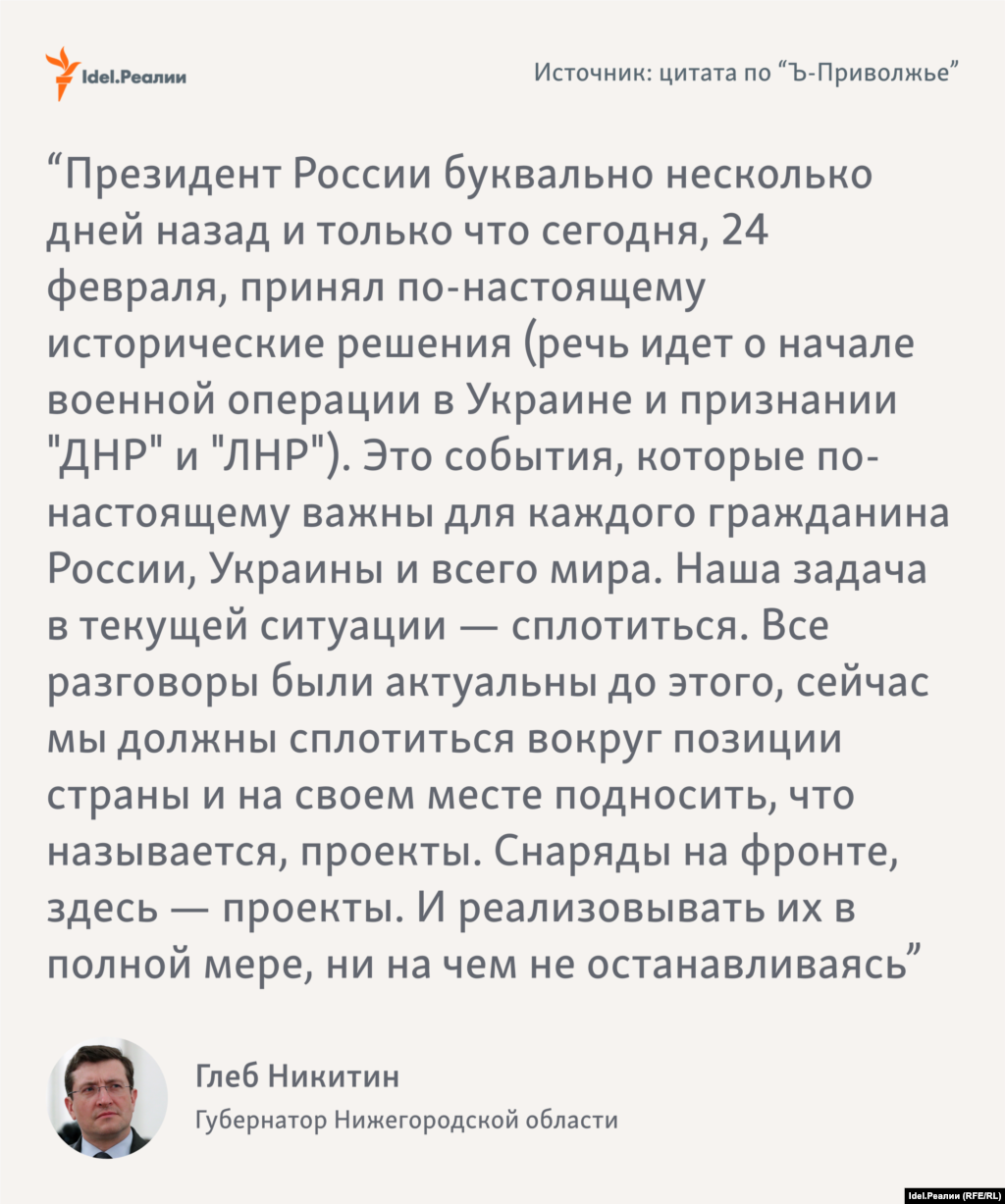 Президент Татарстана, глава Башкортостана, губернатор Нижегородской области... Это далеко не полный список официальных лиц в республиках и областях Поволжья, которые публично поддержали вторжение российских войск в Украину. Приводим их цитаты.
