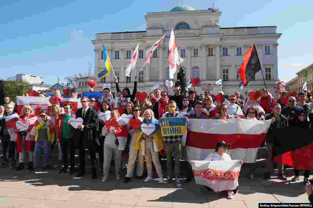 Очередной антивоенный митинг в Варшаве состоялся днём 24 апреля у памятника Николаю Копернику. В этот раз акцию посвятили двум событиям — дню рождения гражданской активистки и политзаключённой из Беларуси Марии Колесниковой и православной Пасхе.