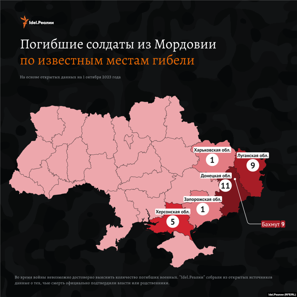 Большинство солдат, согласно нашим данным, погибли в Донецкой области Украины — как минимум 9 человек.
